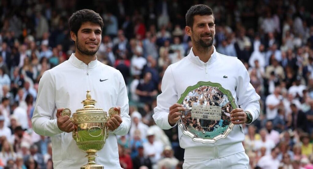 Ante los ojos de su legendario compatriota (Nadal presenció en directo la final en la Rod Laver Arena), Alcaraz acabó imponiendo una intensidad de juego que Djokovic (16 años mayor) no fue capaz de igualar.